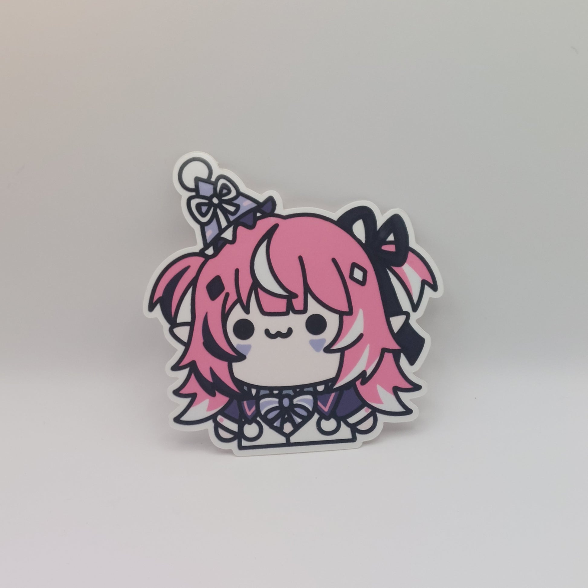 Bring your wiggle VTuber Camila everywhere with you! Soon available as a bobble-head enamel pin and as a weatherproof sticker!