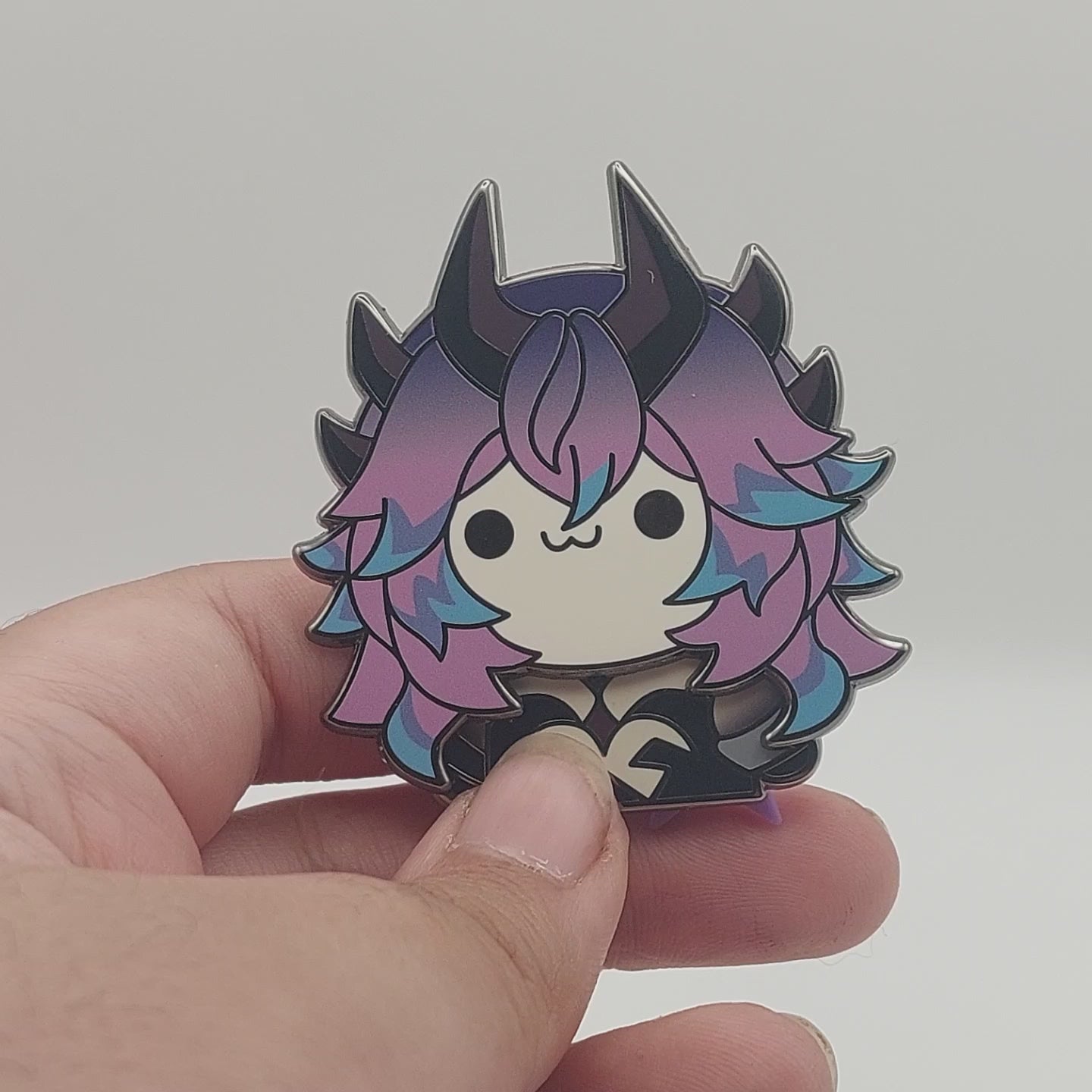 Bring your wiggle VTuber Spite everywhere with you! Soon available as a bobble-head enamel pin and as a weatherproof sticker!