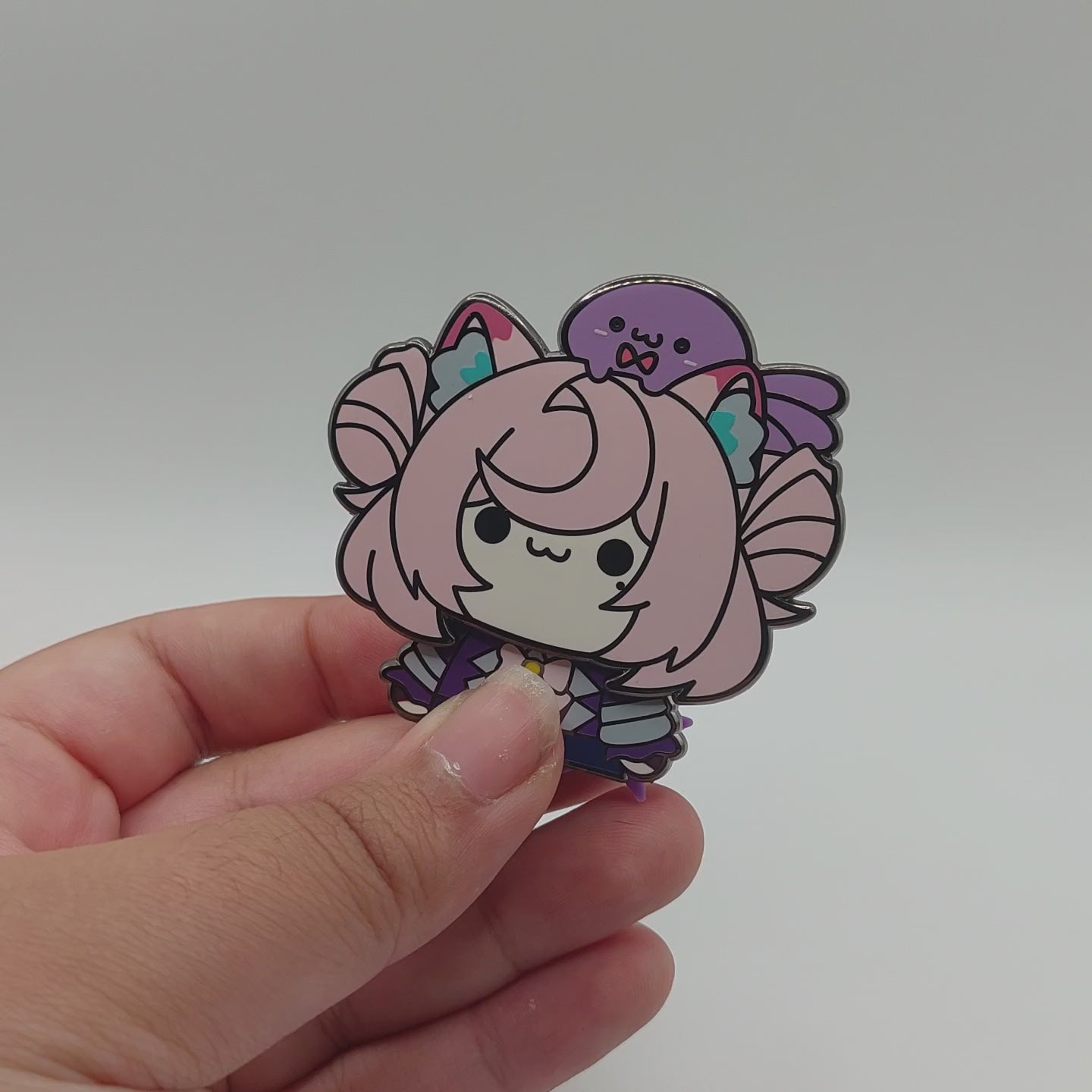 A cute little wiggling hard enamel pin of VTuber EveryLunaEver.